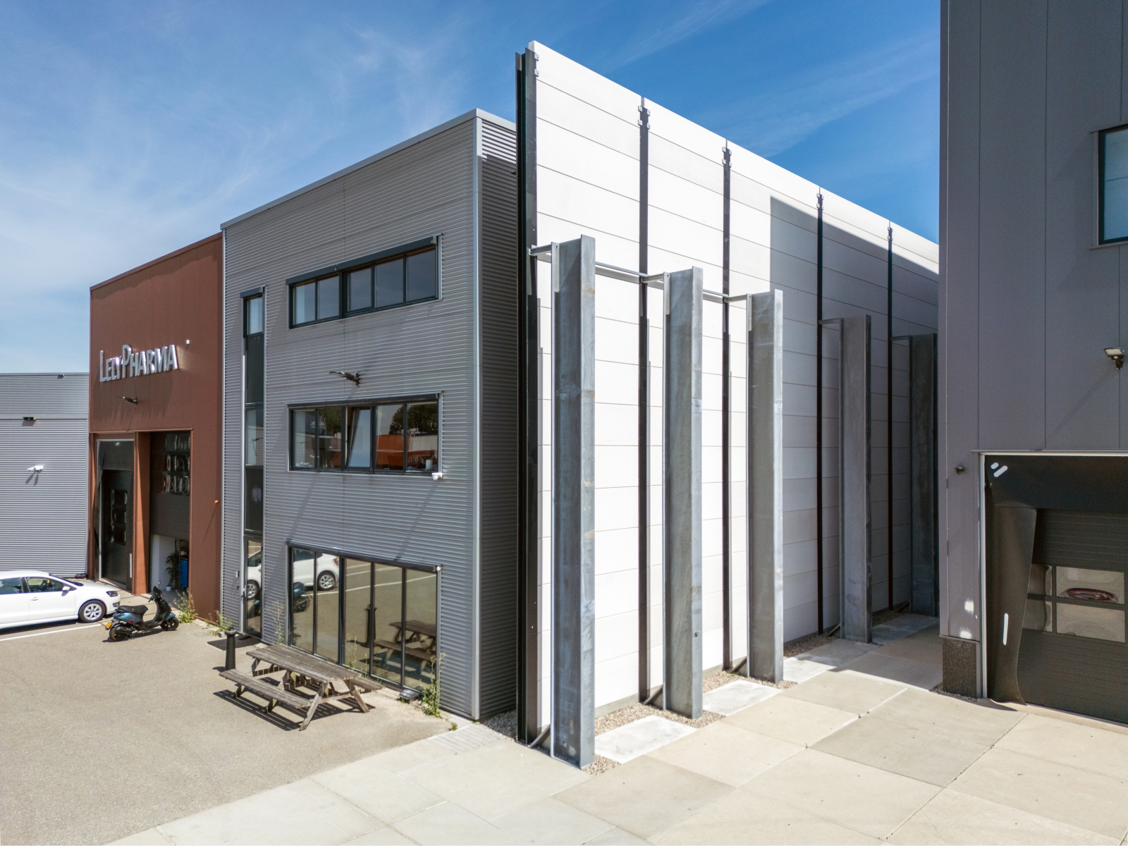 De opvallende cellenbeton brandwand staat tussen twee panden van LelyPharma in Lelystad. Dit farmaceutische bedrijf produceert medicijnen voor zowel dieren als mensen in de Europese markt. “Wist je dat de eisen die worden gesteld aan de veterinaire (dierlijke, red.) farmaceutische industrie net zo streng zijn als voor de productie voor de humane markt?”, zegt Bart Quik, directeur en mede-eigenaar van Lelypharma.
